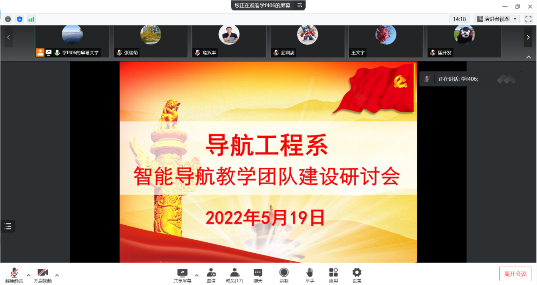与参会人员开展热烈的研讨。针对2022级导航工程专业本科培养方案的课程体系设计、课程名称及学分、实践环节布局、专业特色、教学团队建设等诸多方面建言献策,提出了宝贵的建议,经过近3个小时的热烈研讨,在课题体系设计上统一了思想,达成了共识,为智能导航教学团队建设奠定了坚实的基础,为导航工程系扎实做好导航定位拔尖人才培养工作奠定了良好开端。