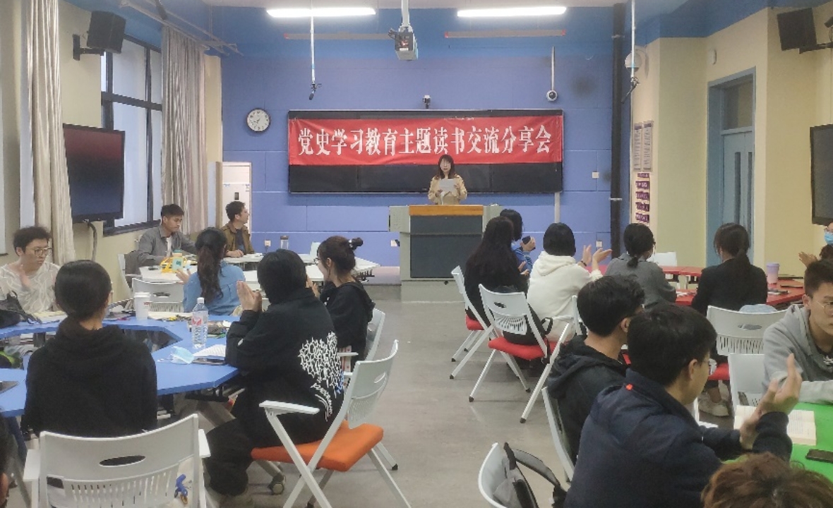 读书交流会上,每名同学结合自身所读书目,分享读书心得和阅读体会。书籍围绕党史,宝包括不同的体裁,有党史学习四本“指定书目”之一的《中国共产党简史》、纪实文学《苦难辉煌》《浴血荣光》、以图文形式展现的《中国共产党的光影记忆》、讲述光辉人物事迹的《中国共产党百人百事》等等,每个人的分享都展现出对于党史不同的学习成果,分享中大家畅所欲言,真情饱满,分享自己收获的同时也聆听了他人的阅读智慧,每个人都在活动过程中得到了一次精神的洗礼。