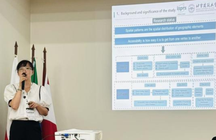 郭贤老师现任ISPRS第五技术委员会第2工作组的联合组长,负责“区域与国际教育计划”主题。受大会主席和ISPRS学生联盟主席的邀请,郭贤老师在11月2日至3日全程参与了ISPRS “地理空间智能:连接人工智能、环境管理和抗灾能力”专题研讨会的各报告单元,并协助组织了同期举行的主题进修班活动。在此期间,通过研讨会和进修班,增进了与国际教育工作者的交流,促进了遥感教育与国际合作在不同地区的普及和推广。郭贤老师于当地时间11月6日上午,在ISPRS第三技术委员“遥感技术与应用”学术大会上进行了题为“A Scene Graph Generation Method for Historical District Streetviews: A Case Study of Mao'er Hutong in Beijing, China.”的学术报告,展示了遥感技术在历史街区保护与可视化方面的应用。随后,于当地时间11月6日下午,作为主持人主持了“AI for image analysis”主题的分会场讨论,为多位国际学者的研究报告引导和组织讨论。此次主持不仅展现了郭贤老师在遥感技术与图像分析领域的专业素养,也加强了与国际同行的交流。