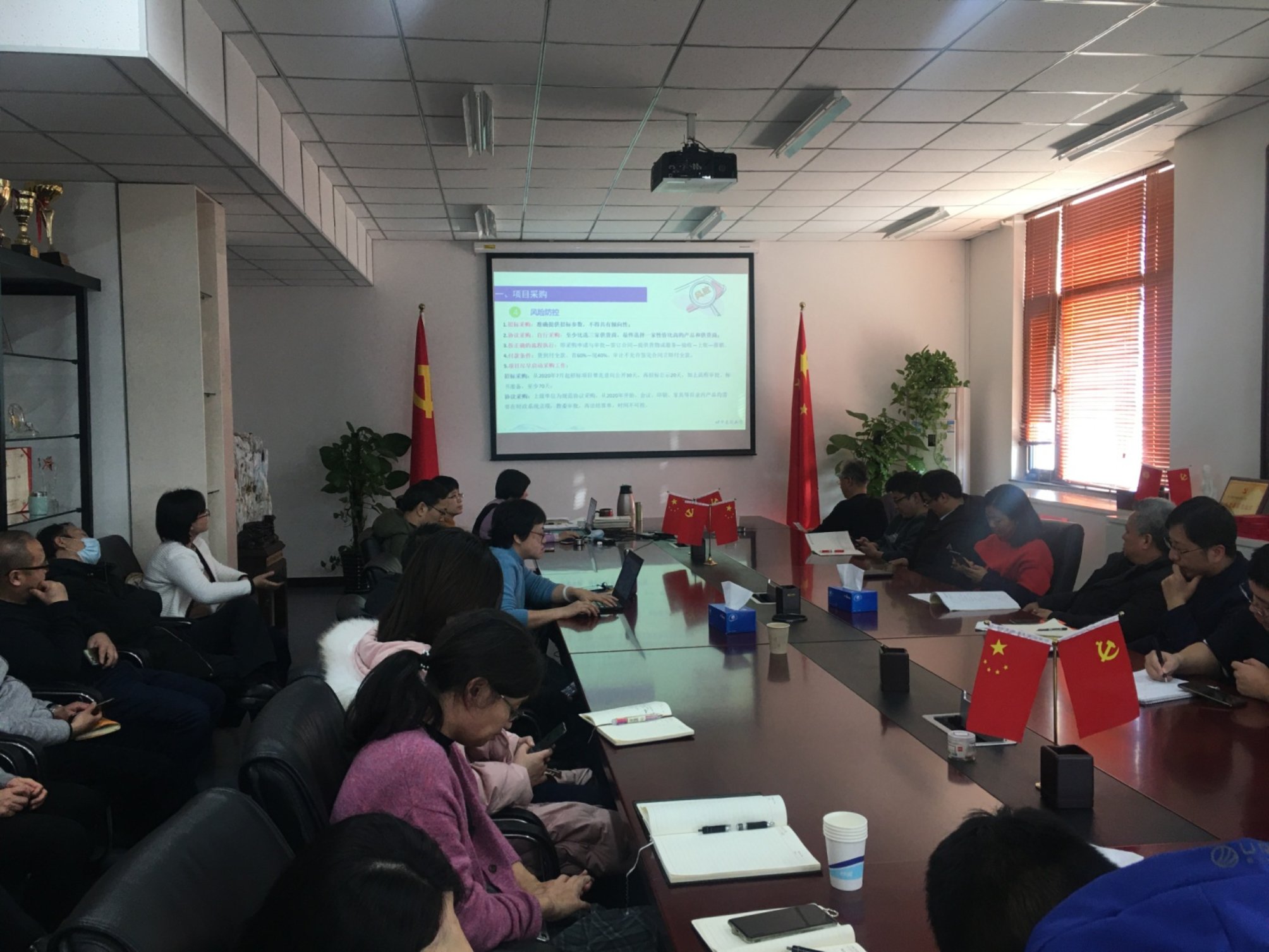 2020年12月24日下午,博雅德州扑克官网 党委召开全院党风廉政建设学习会,国有资产管理处采购办李莹主任应邀开展“项目采购和资产管理的流程与风险防控”专题讲座。