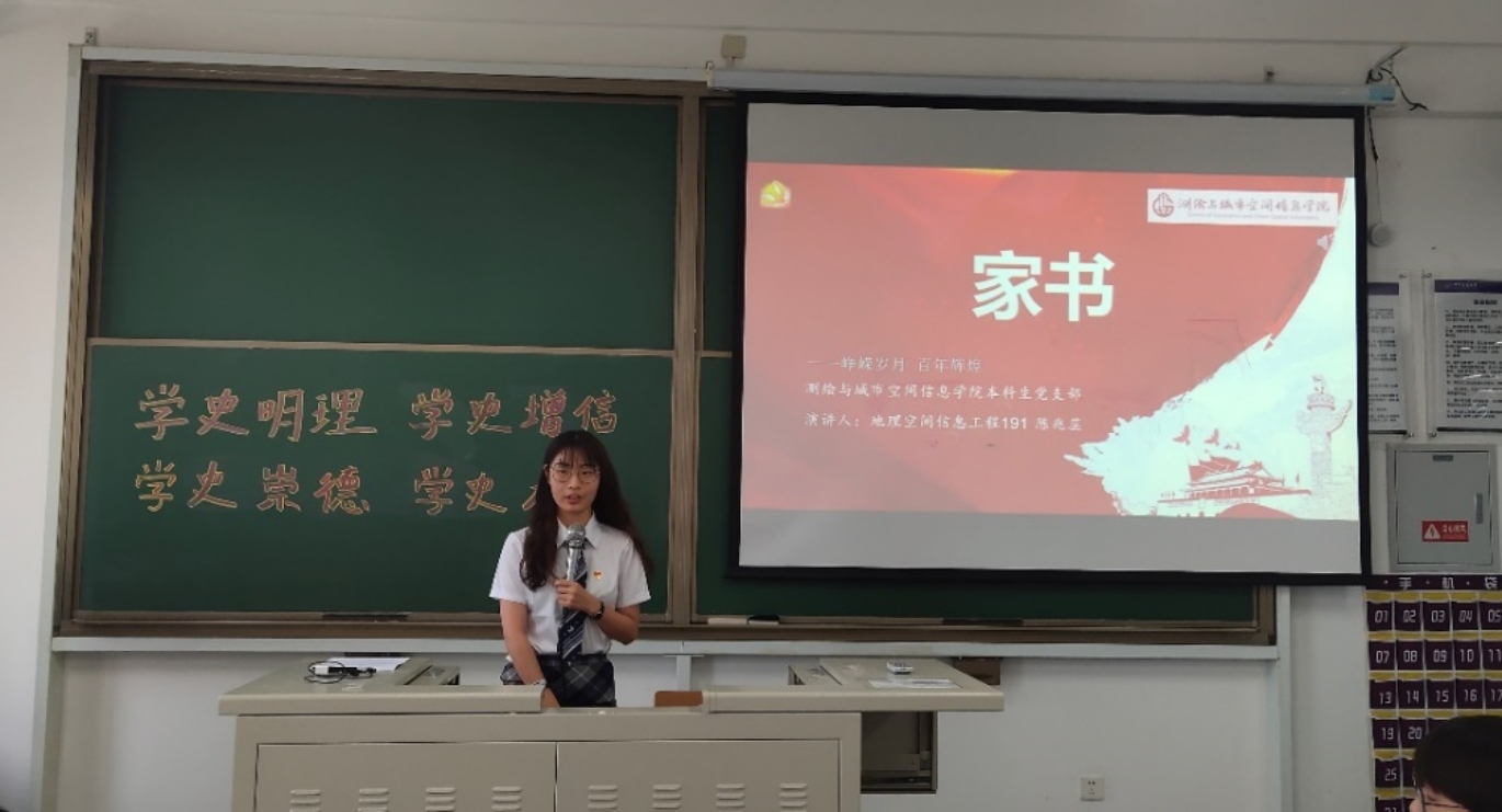 竞赛环节后,由博雅德州扑克官网 微党课比赛一等奖获得者陈兆蕊同学进行了微党课展示,她展示的题目为“家书”,讲述了共产主义战士史砚芬和抗疫天使张旃二人的家书,从家书中体现出伟大的民族精神,引导着青年一代在为国家、为人民的奉献中焕发出绚丽光彩。