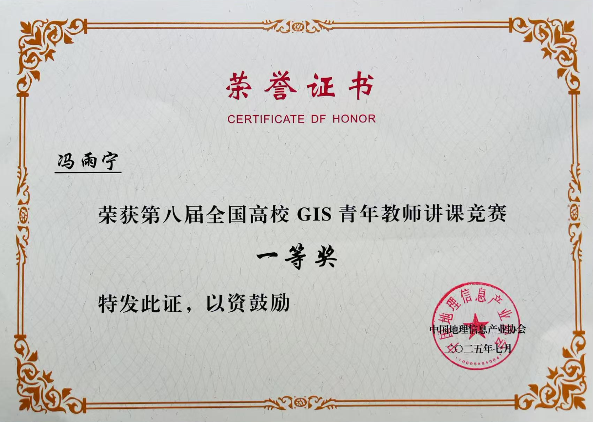 我院地理信息科学系青年教师冯雨宁,在2025年7月参加的“2025年全国高等学校测绘学科教学创新与育才能力大赛”和“第八届全国高校GIS青年教师讲课竞赛”中取得优异成绩。
