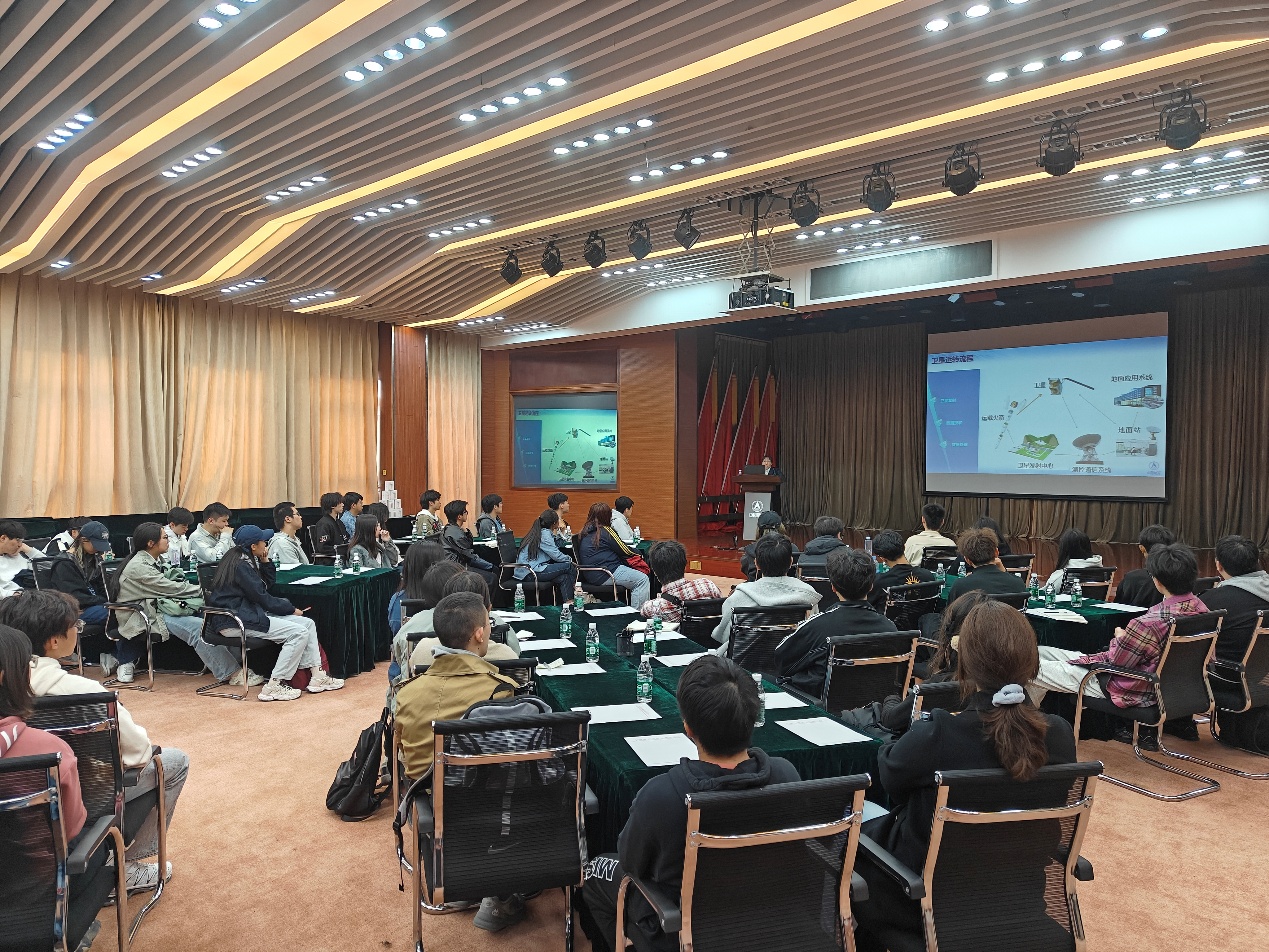 最后,同学们参与了专题讲座。讲座中工作人员以生动的案例讲述了中国资源卫星应用中心的历史发展和我们卫星遥感技术的逆袭之路。从1991年中心成立8年后才迎来首星升空,到如今已建成覆盖全领域的卫星体系;从“受制于人”到“免费共享”;34年逆袭发展史鼓舞着每一位在场的同学。之后进入知识竞赛环节,竞赛题目紧密围绕我国卫星参数、应用场景等专业内容展开,各小组围绕题目热烈探讨,思维的火花激烈碰撞。