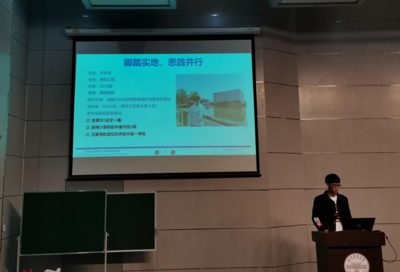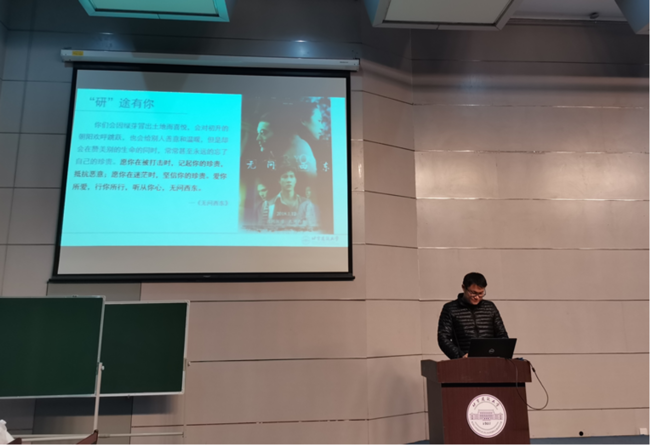 接下来,国家奖学金代表研18级吴学宇、挑战杯国赛二等奖团队代表研18级曹鹏辉、一等学业奖学金代表研18级胡博、图说疫情团队代表研19级王殷瑞分别上台进行发言。大家从研究生生活规划、科研能力培养、科技竞赛、学习态度与方法等方面分享了自己的心得体会,为同学们树立了标杆,提供了宝贵的经验和建议。