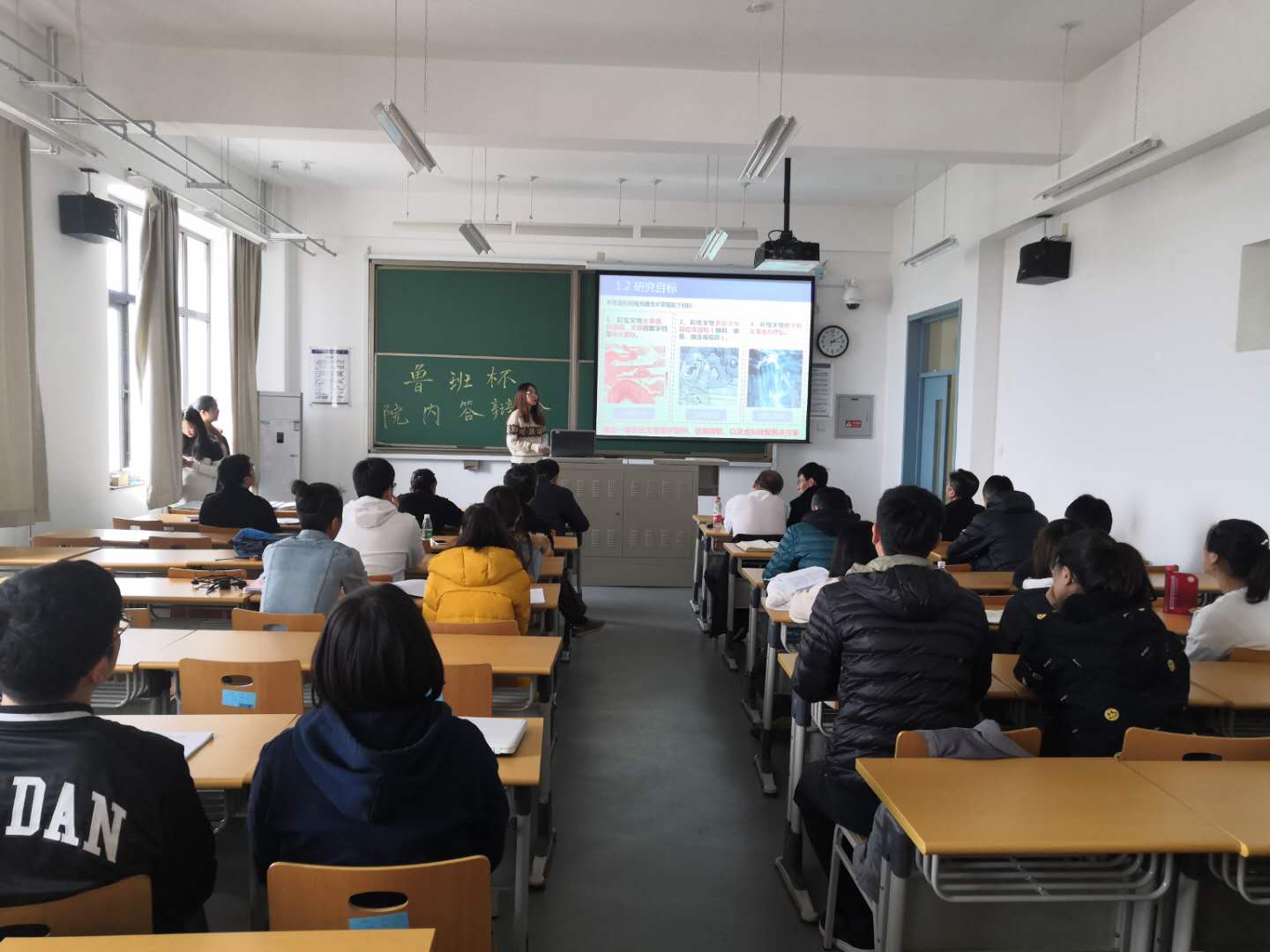 为引导学生崇尚科学、追求真知、锐意创新、迎接挑战,促进学生创新人才培养,在前期组织申报和选拔的基础上,4月9日下午,博雅德州扑克官网 团委举行2019年“鲁班杯”大学生课外学术科技作品竞赛院内选拔赛。博雅德州扑克 往届获奖项目指导教师、专业指导教师组成评审团。参赛队员、院科协成员及部分学生观赛。