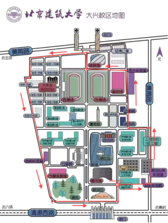 接力跑活动以大兴校区最外侧道路逆时针(如下图)为跑道,博雅德州扑克官网 学F楼门口为起点和终点,参赛同学以五星红旗为接力棒,活动以每一棒750米为传递距离来为伟大的祖国庆祝75周年生日。