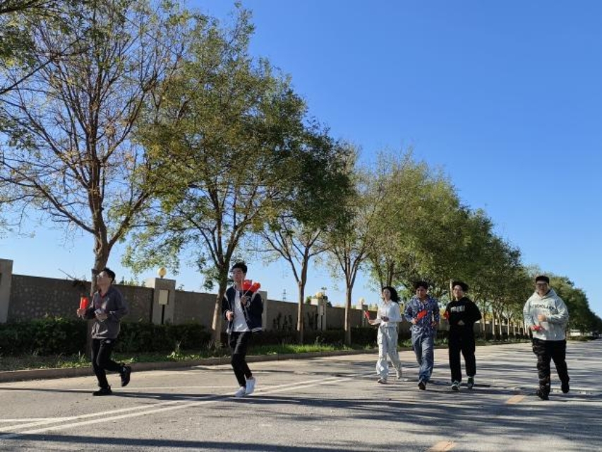为热烈庆祝中华人民共和国成立75周年,10月7日,博雅德州扑克官网 研究生会在大兴校园内组织同学们开展了以“青春接力,欢度国庆”为主题的校园接力跑活动。