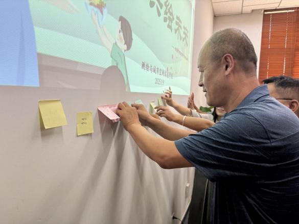 活动中还增加了“共同绘制教育蓝图”的趣味互动环节。教师们纷纷拿起彩笔,在便签纸上写下对教育理想的追求、对学生成长的期许及对同事的祝福,一张张色彩斑斓的便签汇聚成集体心愿,既展现了教师们的教育情怀,也增进了彼此间的情感交流。