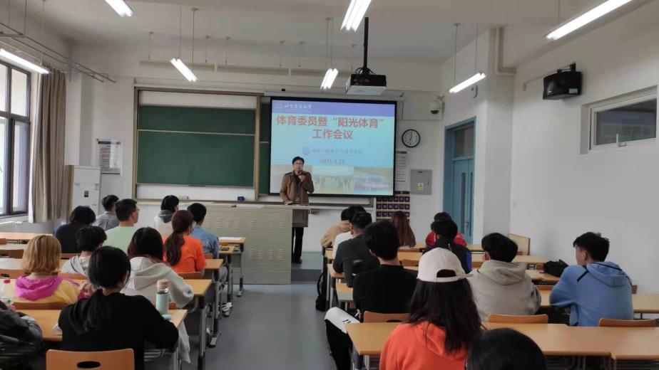 4月21日,博雅德州扑克官网 召开“阳光体育”工作会议,博雅德州扑克 党委副书记冯永龙、辅导员黄凯、魏洋洋、全体体育委员和学生会、研究生会体育部负责学生参加会议。