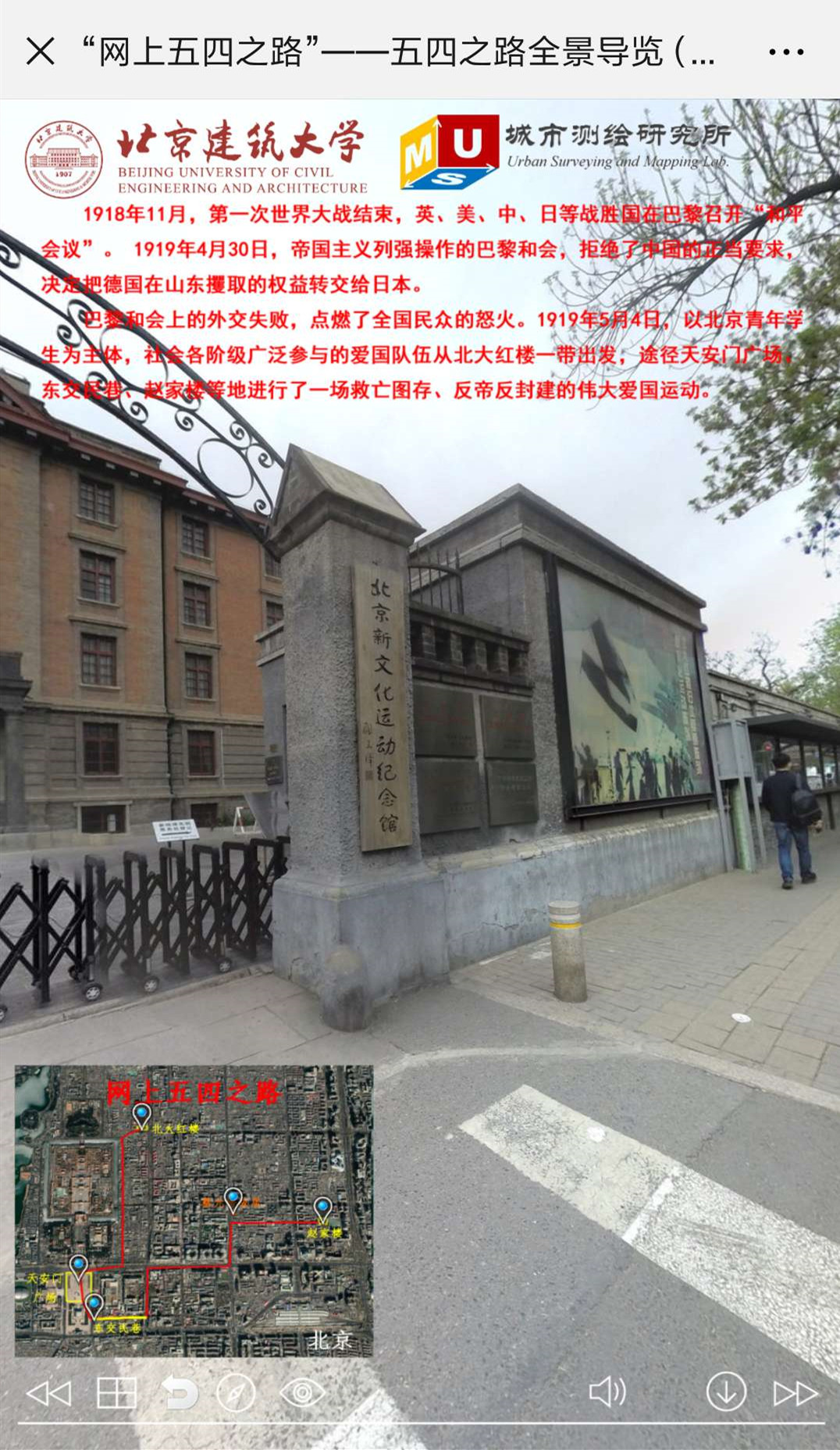 登录“网上五四之路”(五四之路全景导览)-首发版,请访问//indoorinfo.cn/wusizhilu