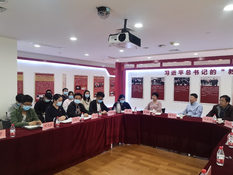 姜泽廷与师生党员交流学习心得和收获,对大家的发言表示肯定。他指出,要从党史学习中汲取力量,紧密结合实际开展学习。学校正在开展“学党史、优教风、严学风、强作风”专项行动,党史学习要与改进和加强“三风”紧密结合起来,把学校党委的整体部署和创新举措落细落实到每一个支部、每一名党员。他要求,全体党员师生要认真学习党史,传承好党的求真务实作风;党支部要发挥战斗堡垒作用,在“三风”建设中凝聚合力,争做表率。在“五一”劳动节和“五四”青年节来临之际,他向大家致以节日的问候,并叮嘱同学们强化安全意识、遵循安全规范,在安全学习生活的前提下,健康成长、不断进步。