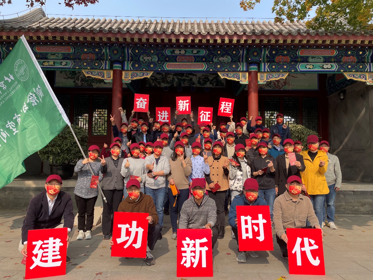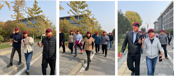 活动中大家走在五彩斑斓的小径上,品味着秋天的味道,畅谈着工作和生活中的趣事,感受着校园深秋的美景及运动带来的快乐,在欢声笑语中缓解了工作压力。在历经5处校园标志性景观打卡处后,老师们抵达位于四合院的终点,并参加党史知识小测试活动。