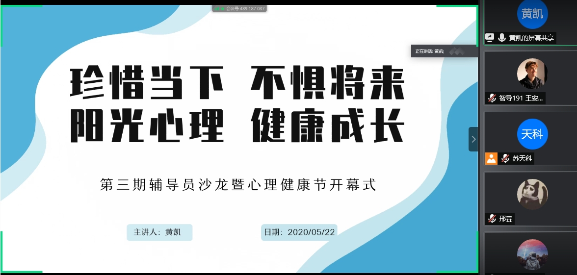 为不断加强辅导员队伍专业化建设,5月22日,博雅德州扑克官网 举办2020年第三期辅导员沙龙。本期沙龙聚焦学生心理健康,以“珍惜当下 不惧将来 阳光心理 健康成长”为主题,同时作为博雅德州扑克 心理健康节开幕式。博雅德州扑克 全体辅导员及各班班长、心理委员、生活委员、体育委员和学生代表参加本次活动。