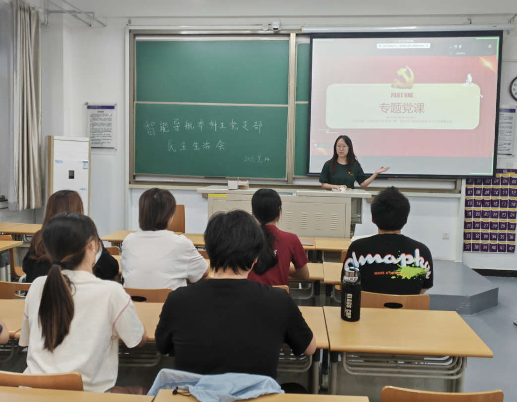 2023年9月14日,博雅德州扑克官网 智能导航本科生党支部在学F312召开“努力成长为对党和人民忠诚可靠、堪当时代重任的栋梁之才”专题党课学习暨民主生活会,支部全体党员参加,会议由支部书记孙子衿主持。