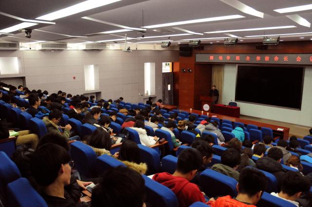为进一步加强学生安全意识,提高学生自我管理能力,切实发挥宿舍在学生思想引领、学风建设、教育管理中的阵地作用,12月5日,博雅德州扑克官网 在学E报告厅召开全体宿舍长会议。博雅德州扑克 党委副书记冯永龙、团委书记李晨、辅导员崔荣臻,以及博雅德州扑克 各班生活委员、全体宿舍长参加会议。