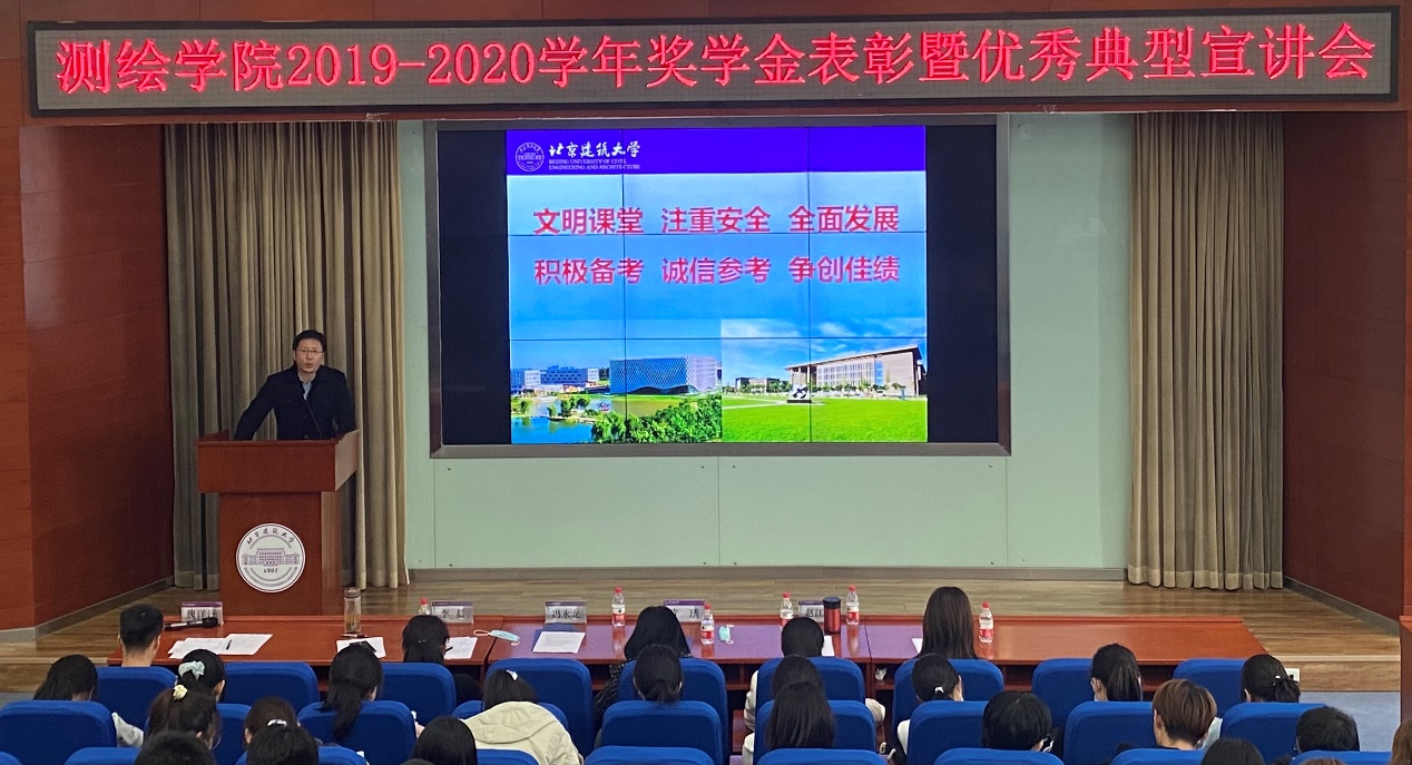 冯永龙通过解读蔡奇书记调研北京建筑大学重要讲话指出,同学们要积极主动投身首都规划建设当中,发扬北建大精神,在新时代的追梦征程中成长成才。同时,他从“文明课堂”、“注重安全”、“全面发展”“积极备考”“诚信参考”“争创佳绩”六个方面同大家做了交流和强调。