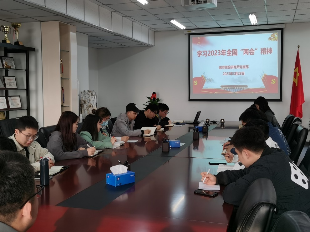 2023年3月28日下午,为深入贯彻学习习近平总书记在全国两会期间的重要讲话和“两会”精神,城市测绘研究所党支部召开了支部党员大会,会议由党支部书记陈铮主持,支部19名党员参加。