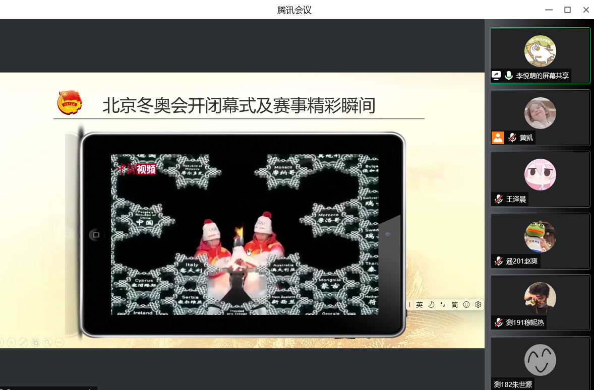 团日活动中各支部组织同学们共同学习习近平总书记关于北京冬奥会和冬残奥会筹办工作的系列重要指示精神、习近平总书记给苏翊鸣回信精神,一同回顾了北京冬奥会开闭幕式及赛事精彩瞬间。