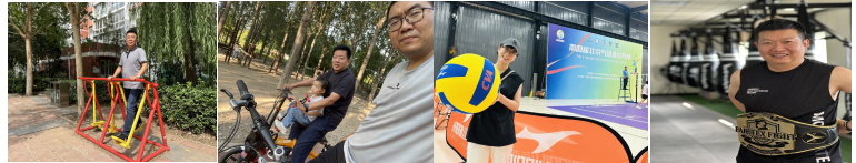 运动健康:老师们有利用身边各种体育设施进行锻炼,有参加体育项目比赛、有健身房健身,珍惜自由时间,加强身体锻炼。