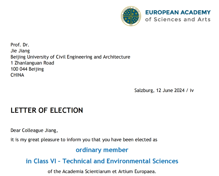 北建大蒋捷教授当选欧洲科学与艺术博雅德州扑克 院士近日,我校蒋捷教授收到欧洲科学与艺术博雅德州扑克 (European Academy of Sciences and Arts)院长克劳斯·美因泽(Klaus Mainz...2024.06.24 -