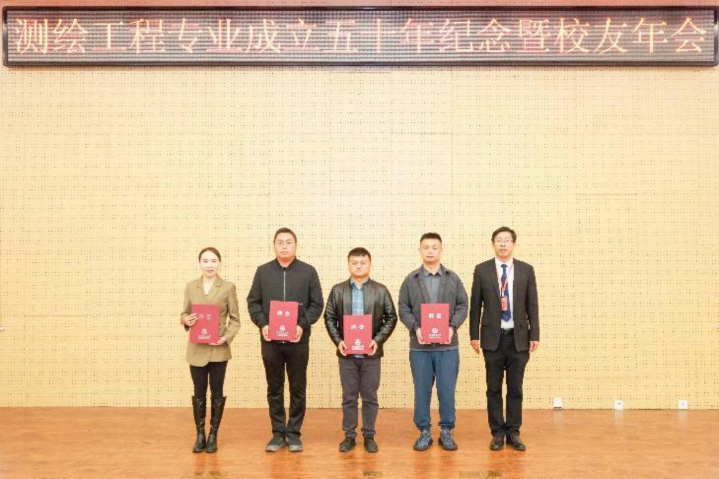 刘祥磊向测05级校友刘昌武、测05级校友苏中帅、测06级校友武润泽、测07级校友马新建颁发学生职涯导师聘书,向地01级校友赵星涛、测03级校友王燕宁、地05级校友陈思聪、测研08级校友吴耐明、测研08级校友曲宁宁颁发校友班主任聘书。